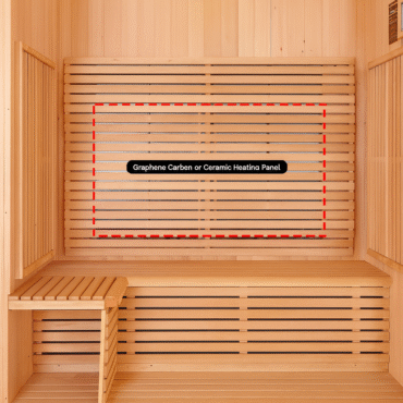 This sauna’s heating zone features concealed graphene or ceramic heating plates, forming the core of the infrared heating system. It provides fast, even, and deeply penetrating warmth to help detoxify, relax muscles, and relieve stress, while being energy-efficient and safe, making it an ideal choice for home saunas, spas, and wellness applications.