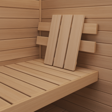 Smooth wide slats with a gently angled backrest deliver comfortable seating and natural support for relaxation. The premium natural wood construction promotes even heat circulation, while precise joinery and rounded edges enhance both safety and visual harmony. Perfect for creating a relaxing, spa-quality experience in any home or commercial sauna.