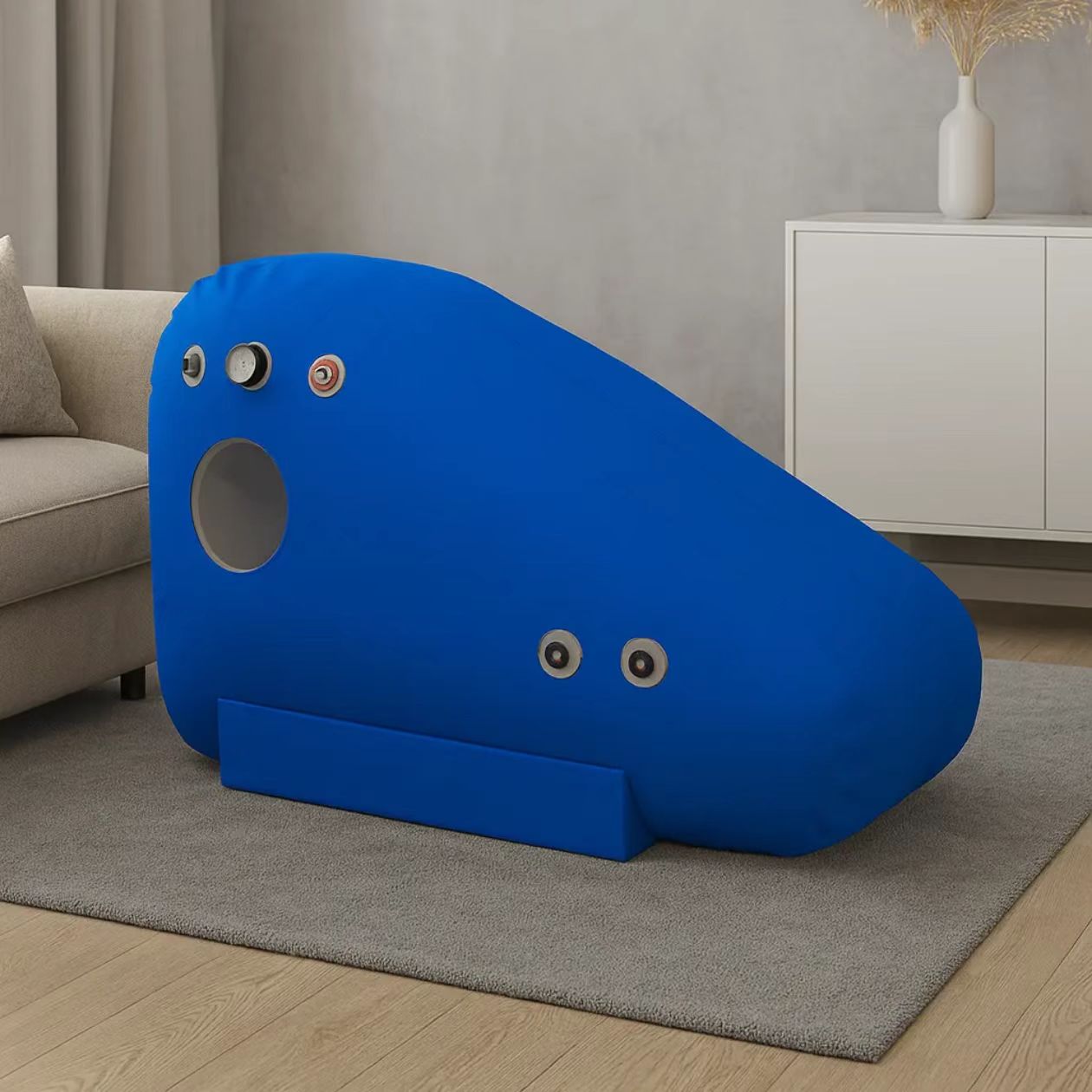 This sitting-type chamber is designed for users who prefer to remain seated on a folding chair during hyperbaric oxygen therapy, making it ideal for anyone uncomfortable lying down.